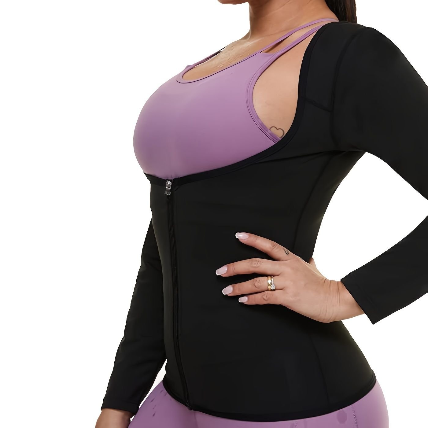 Sauna Suit For Women Sweat Body Shaper Waist Trainer Long Sleeve Zipper Shirt ( Buy A Size Up )